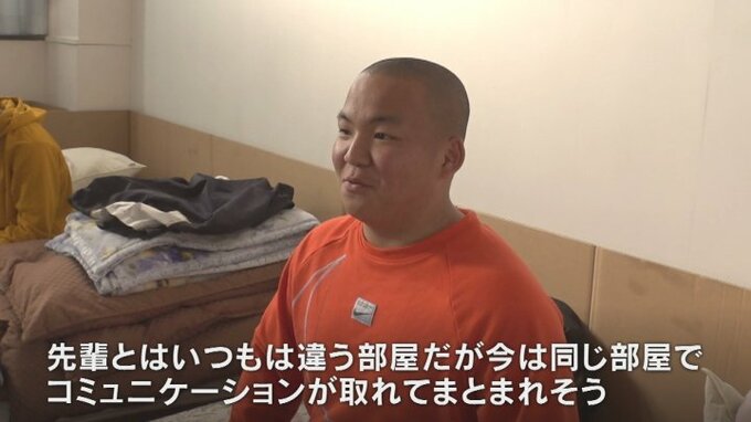 「地震で会えないさみしさもあったから、また仲間と集まって楽しくやっている」「先輩とはいつもは違う部屋だが今は同じ部屋でコミュニケーションが取れてまとまれそう」