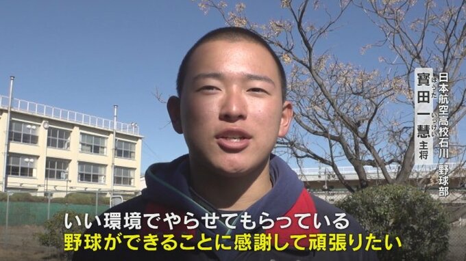 日本航空高校石川 野球部 寳田一慧主将:
