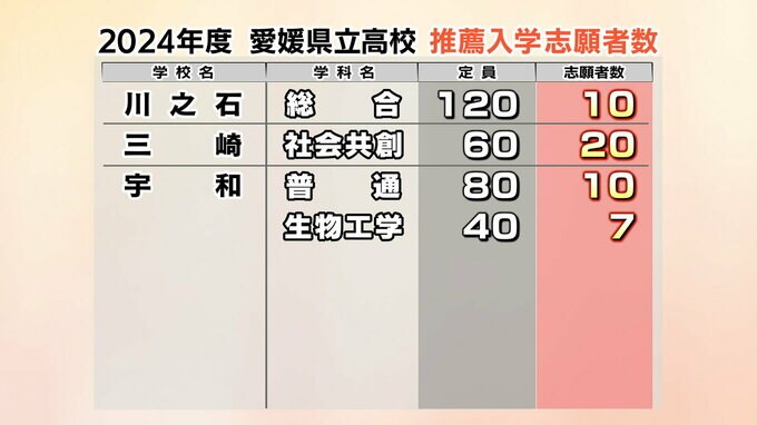 2024年度愛媛県立高校 推薦入試志願者数 全校掲載