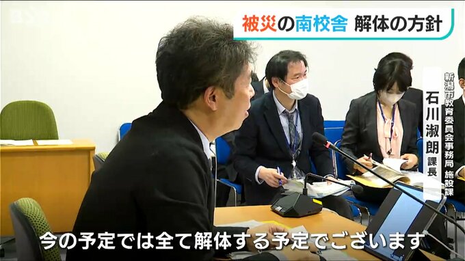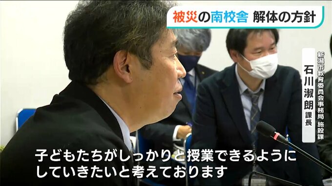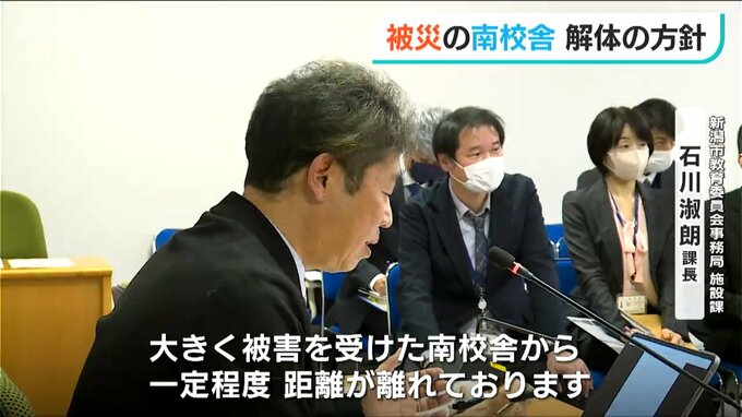 【新潟市教育委員会事務局 施設課 石川俶朗 課長】「北校舎、管理棟に関しましては大きな被害を受けた南校舎から一定程度距離が離れております。使用は可能だと考えておりますが、避難に関してはよく関係課とも話をしていきたいと思っております」