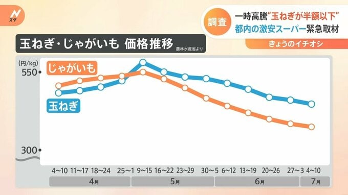 高騰が叫ばれていた玉ねぎ・じゃがいもが徐々に価格が下がってきているのです。そこで…