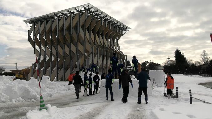真庭市のグリーナブルヒルゼンでは、今週末に開催される「ひるぜん雪恋まつり」に向け、きのう(29日)から3つの「巨大かまくらづくり」が始まりました。