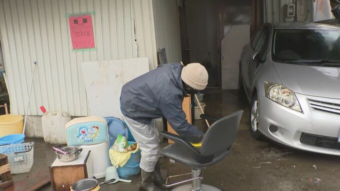石川県珠洲市宝立町で美容室を営んでいた岸田孝子さんは、断水が続く中、29日、溜めた雨水を使って掃除をすすめていました。