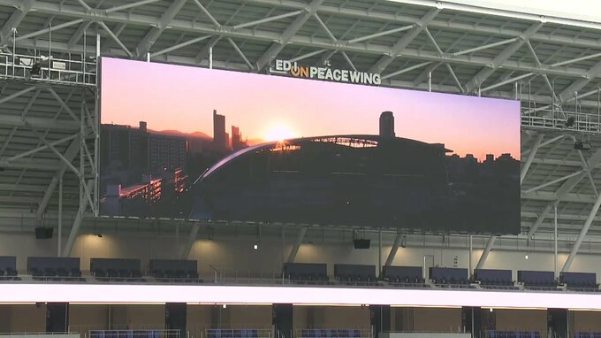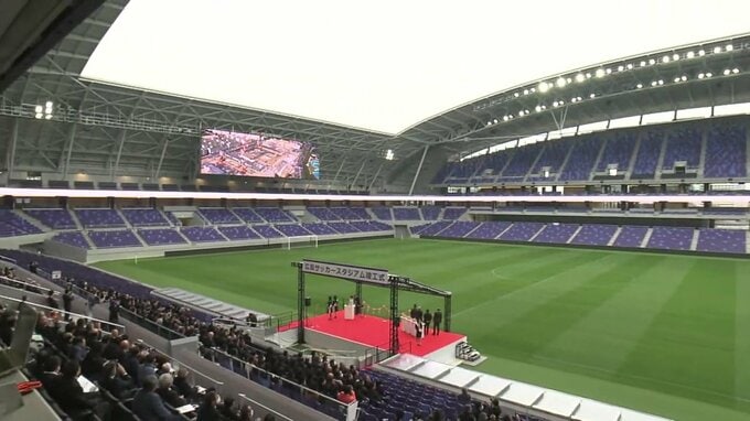 屋根付きのサッカースタジアムとしては、国内初の「街なかスタジアム」となる「エディオンピースウイング広島」で、開業を翌日に控えた31日、竣工式が開催されました。竣工に合わせて、「キャプテン翼」の巨大な壁画もお披露目されました。