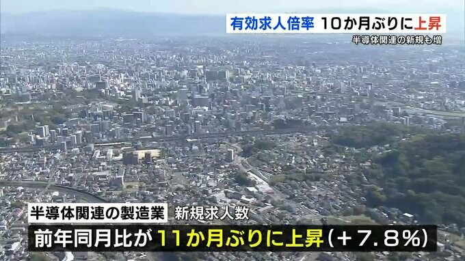 熊本労働局は、上昇の理由として昨年度から続いていた半導体関連の減産傾向が落ち着いたとの見方を示し、事業所によっては新工場の稼働で今後更に求人を増やす可能性があるとしています。