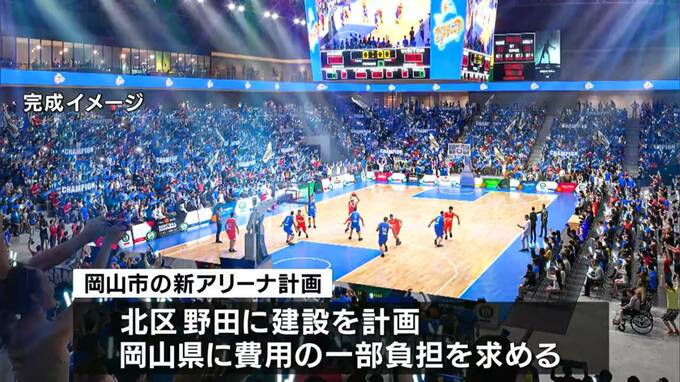岡山市が北区野田に建設を目指している新アリーナを巡っては、市が岡山県に費用の一部負担を求めていて岡山市は県の回答を踏まえながら、今月中に建設に絡む新年度の当初予算の方針を決めたいとしていました。