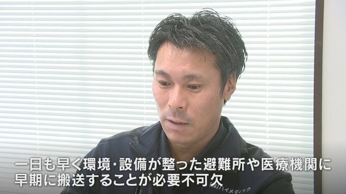 「1日も早く環境設備が整った避難所や医療機関に早期に搬送することが必要不可欠」
