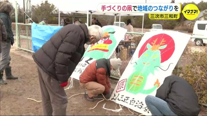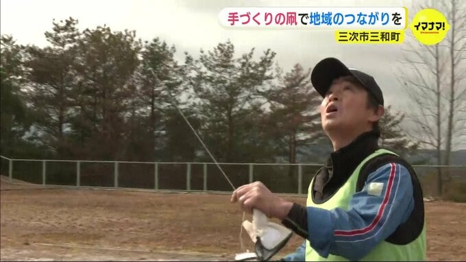 新年の風物詩で地域を盛り上げようと、手づくりの凧あげ大会が、広島県三次市で開かれました。