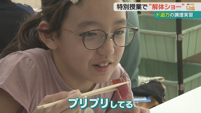 迫力満点のマグロの解体に、子どもたちからは自然と歓声や拍手が湧き上がりました。