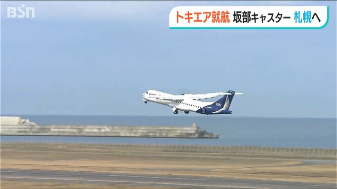 「地域航空会社トキエア、いよいよテイクオフです。幾多の就航延期を乗り越えてトキの翼で新潟空港を飛び立ちます」
