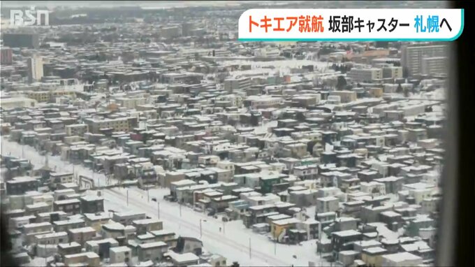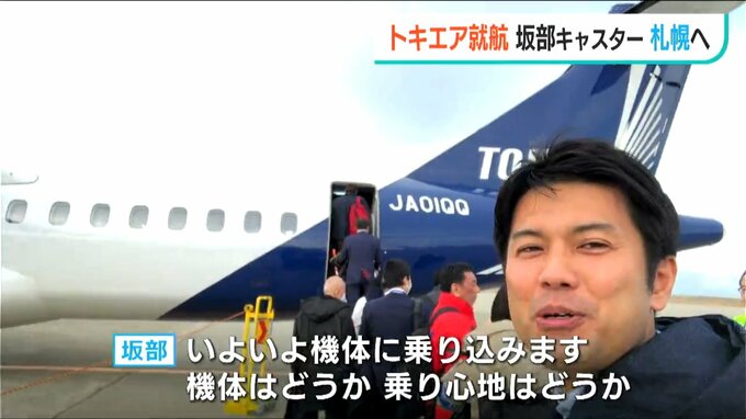 実はこの初便にBSN・ゆうナビの坂部友宏キャスターが乗っていました。
