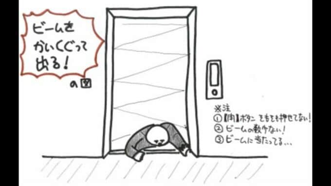 「センサー自体は、片側から光が出て、もう片方が光を受信する、という仕組みです。糸のような細長い形で、さまざまな角度でついているので、センサーをかいくぐってエレベーターから出るというのはまず不可能かと…」