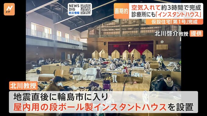 実は北川教授、地震直後に輪島市に入り、屋内用の段ボール製インスタントハウスを設置。