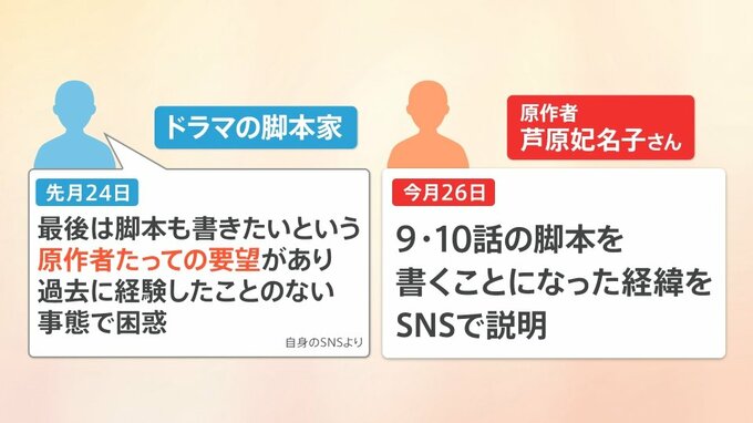 2023年12月24日、ドラマの脚本家が「最後は脚本も書きたいという原作者たっての要望があり、過去に経験したことのない事態で困惑した」(一部抜粋)とSNSに投稿。