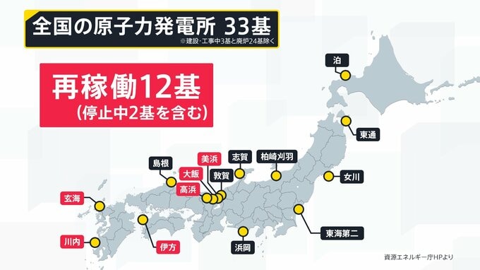 全国では現在、33基ある原発のうち、西日本にある12基が再稼働している状況です。