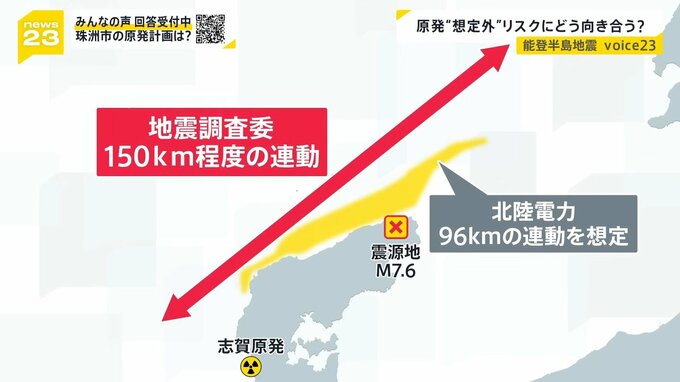 北陸電力は事前に、能登半島北部の大地震断層について、連動する全長を96キロと評価をしていました。