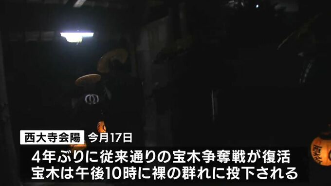 2月17日、4年ぶりに宝木争奪戦が復活する西大寺会陽です。裸の男たちが奪い合う「宝木」の原木を受け取る伝統の儀式「宝木取り」がきょう(1日)未明に行われました。