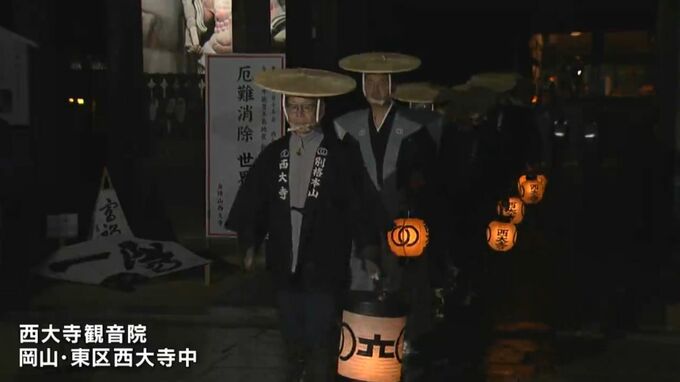 午前0時、9人の使者が西大寺観音院の仁王門から出発しました。