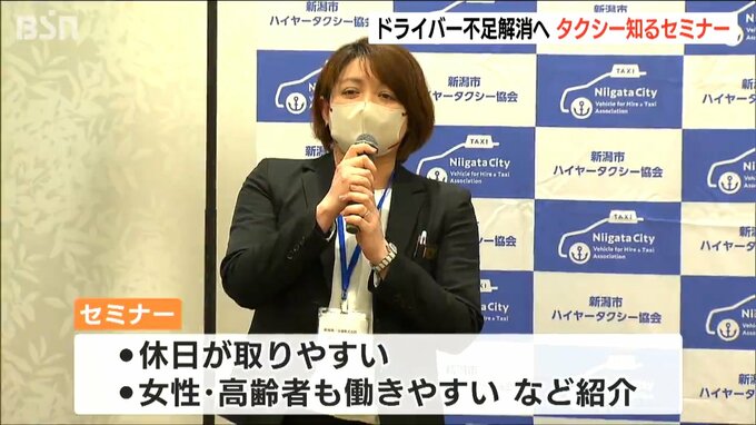 タクシー運転手が不足する中、タクシー業界に興味をもってもらおうと、現役の運転手が働き方などを紹介するセミナーが新潟市で開かれました。