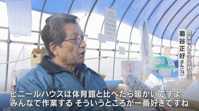 農業用ハウスで避難生活 菊谷正好さん(74):