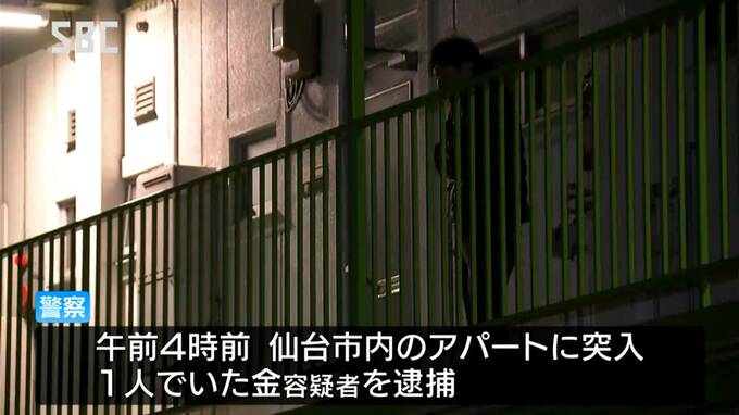 閃光弾使って未明のアパートに突入 全国重要指名手配の金成行容疑者を殺人未遂容疑で逮捕「似た人物を見かけた」がきっかけ 2020年に拳銃で男性の腹を撃ち逃走 長野県内で犯行3年4か月後に仙台で逮捕 信越放送 2024年2月1日(木) 12:06 国内 目撃者: 「乾いた銃声みたいな音(が聞こえた)」 警察が突入した際、金容疑者は一人でいたということで、警察は潜伏していたアパートに入るなどして調べを進めています。