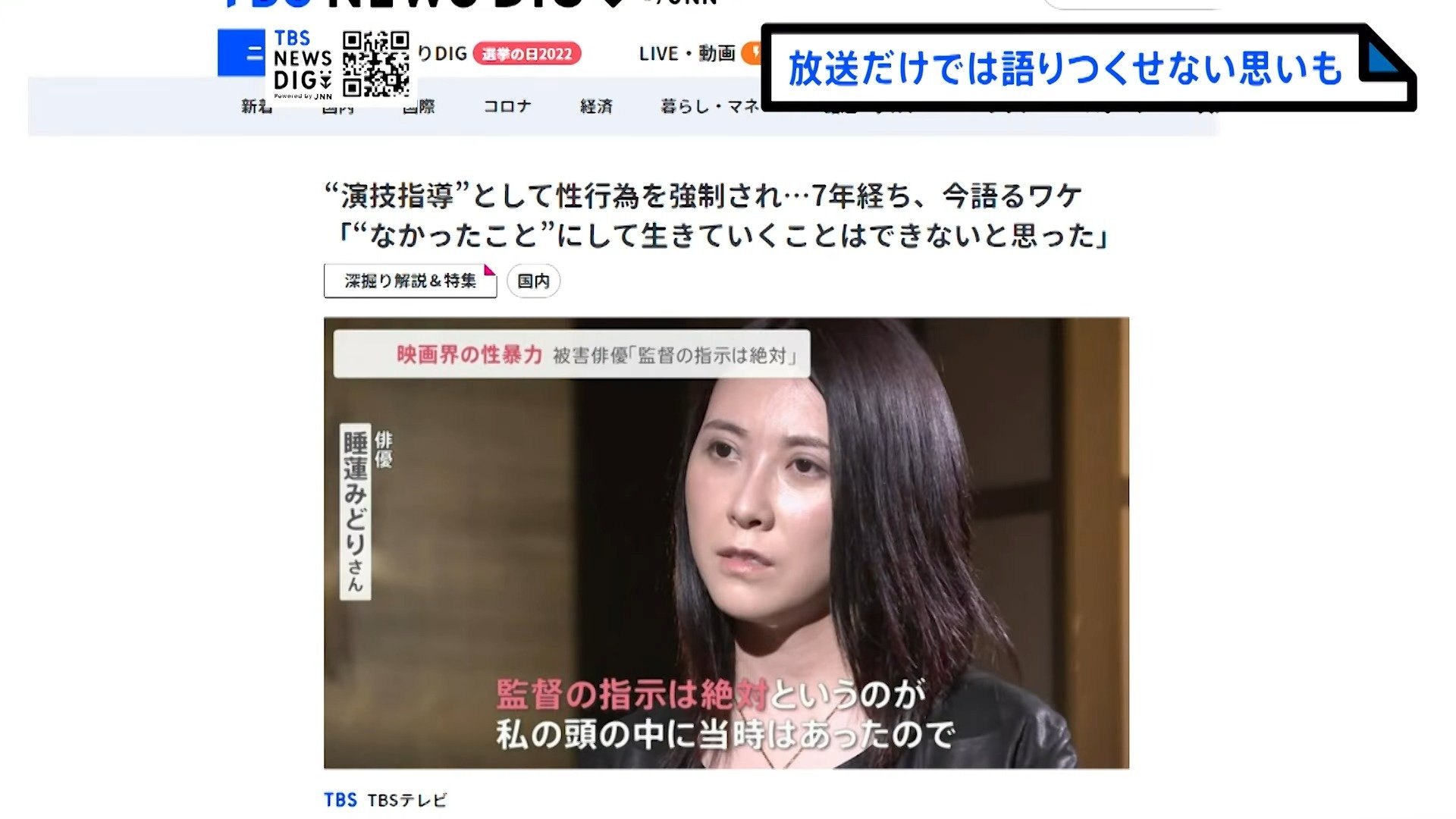 2022年5月に公開された、映画界の性暴力を俳優が実名で告白した記事は、これまでに1100万回以上のページビューを記録しています。