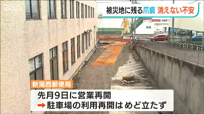新潟西郵便局は地震による液状化で停めてあった車が噴き出した土砂に沈んでいました。1月9日に営業を再開しましたが駐車場が使えるようになるめどはまだ立っていないということです。