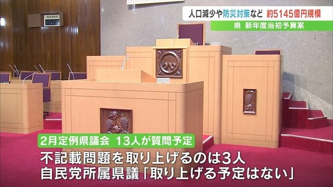 なお、2月議会では代表・一般あわせて13人が質問に立つ予定ですが、2月1日までのUTYの取材に対して知事の不記載問題を取り上げるとしたのは立憲民主党系の会派、それに諸派のあわせて3人で、自民党所属の県議は「取り上げる予定はない」としています。