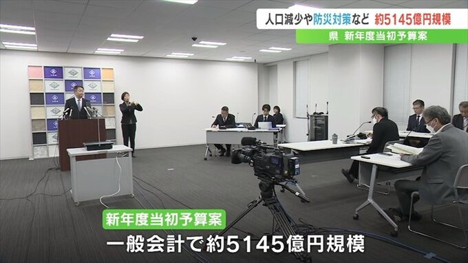 長崎知事は2期目の2年目となる新年度の県の当初予算案について一般会計で約5145億円規模とする事を明らかにしました。