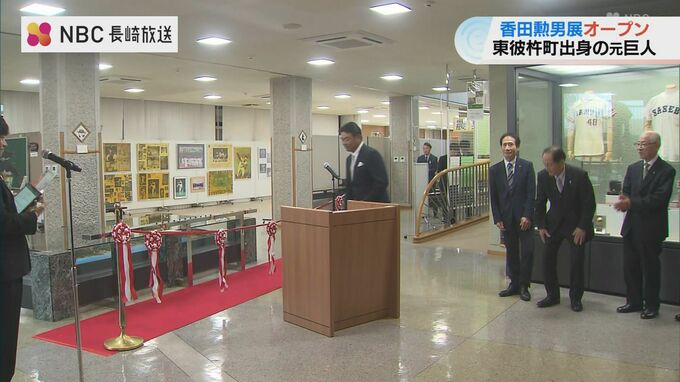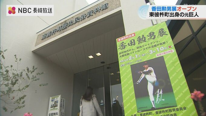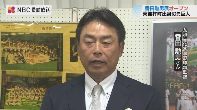 プロ野球読売巨人軍の元投手で、現在は、長崎県佐世保市の九州文化学園野球部監督を務める香田さんの活躍を振り返る展示会が地元、長崎県東彼杵町で始まりました。