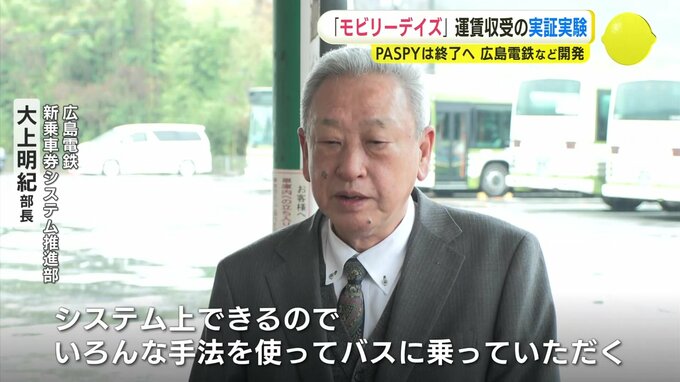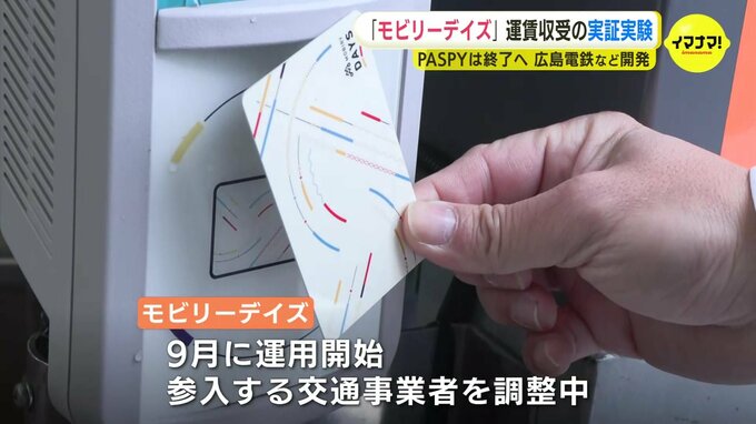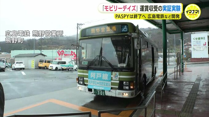 実証実験がはじまったのは、広島市安芸区と熊野町を結ぶバス路線です。「モビリーデイズ」は、来年の3月で現在の交通系ICカード「パスピー」が終了するため、広島電鉄などが新たに開発している乗車券システムです。