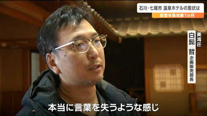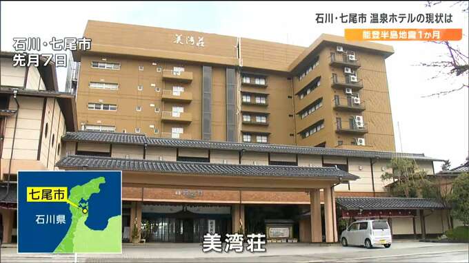 能登半島地震の発生から1ヵ月です。発生6日後の1月7日にtbc記者が取材した石川県七尾市の温泉ホテルでは従業員らが片付け作業を進めているものの営業再開の見込みは立っていません。