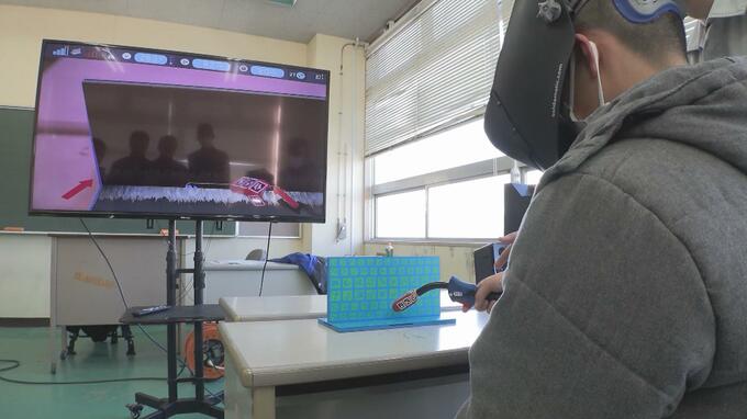 こちらはAR溶接訓練システムを利用した金属溶接の体験です。専用のヘルメットをかぶり安全に金属溶接の疑似体験をすることができます。