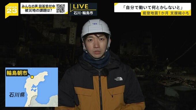 私は、地震の爪痕が色濃く残る輪島市の朝市通りにいます。1か月経っての“変化”というのを、現場で感じています。