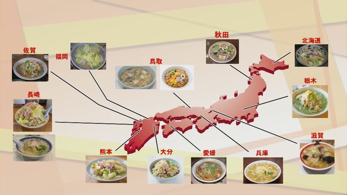具材が豊富なちゃんぽんは、安価で栄養豊富な食べ物として全国に広がり、各地で様々なご当地ちゃんぽんが生まれたといいます。