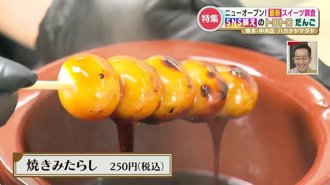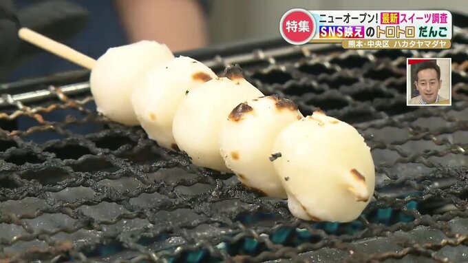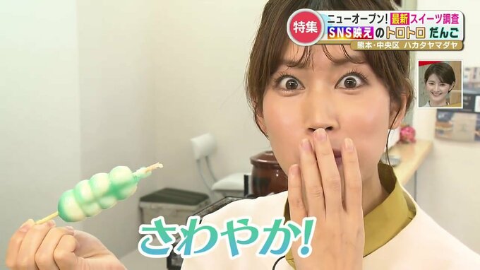 坂本アナ「わ~とろとろだ~!いただきます。おいしい!この香ばしい感じ。みたらしの良い甘さを感じる。これで食べ歩きは最高ですね!」