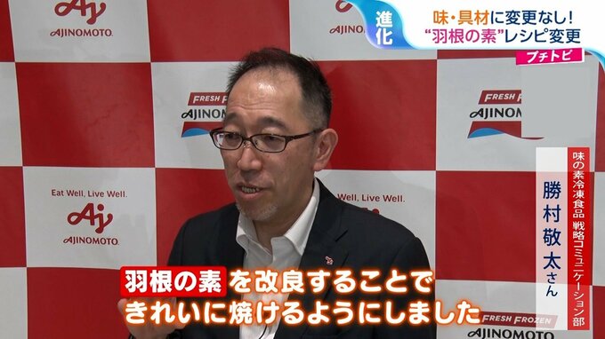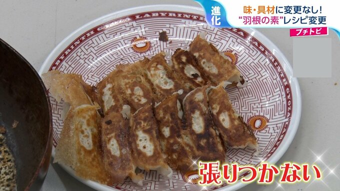 ギョーザ自体の味や具材は変えずに、羽根の素のレシピを変更。