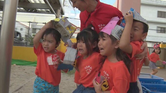 那覇市のながやま保育園では、2月3日の節分を前に園児ら90人が紙芝居で豆をまいて福を招き入れる節分行事についてお勉強しました。