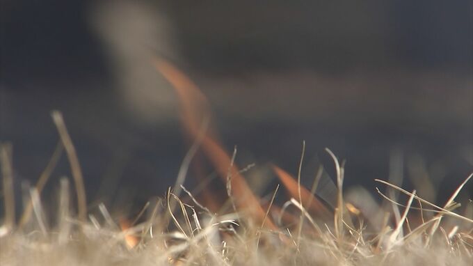 冬枯れした芝に、火がつけられます。