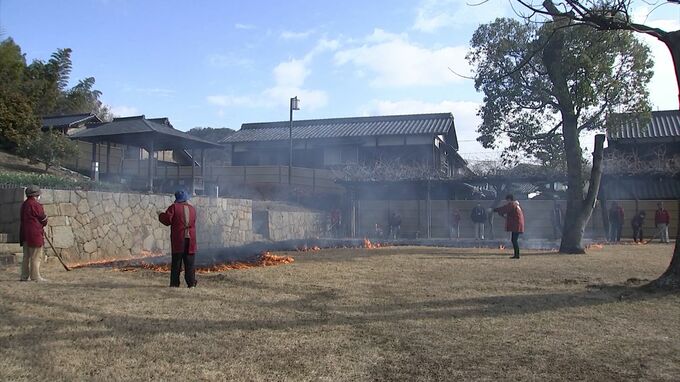 岡山県浅口市にある「かもがた町家公園」で、早春の恒例行事「芝焼き」が行われました。