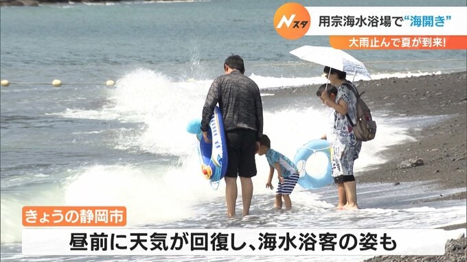 静岡県静岡市の海水浴場が海開きを迎え、天気が回復した昼前からは多くの海水浴客で賑わいました。静岡市駿河区の用宗海岸海水浴場では海開きを前に、地元の公民館で神事が行われて海水浴客の安全を祈願しました。1…