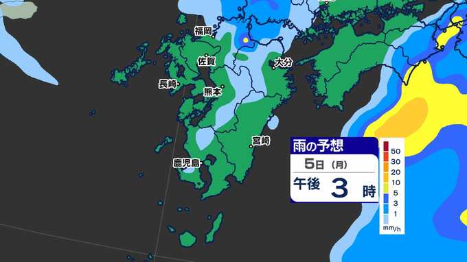 【低気圧通過・九州大雨のおそれ】週末・週明け雨のシミュレーション3日(土)~4日(日)・5日(月)まで 南日本放送 2024年2月2日(金) 18:43 国内 天気 雨のシュミレーション 5日(月)午前3時~午後3時 雨のピークは、5日(月)昼前の見込み。午後は急速に回復に向かい、陽射しが戻る可能性がある。来週火曜日以降は、晴れる所が多くなるでしょう。 v