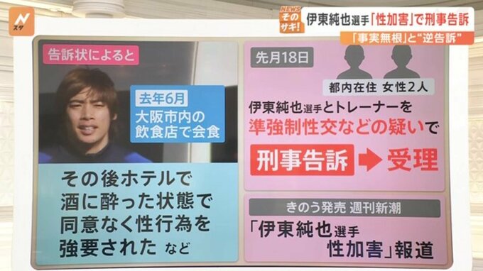 これを受けて伊東選手は、2月1日、この女性2人に対して、虚偽告訴の疑いで刑事告訴し、こちらも受理されました。