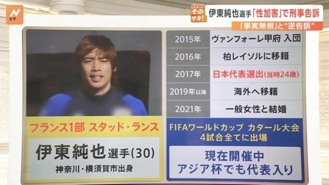 サッカー日本代表で主力メンバーとして活躍している伊東純也選手について、1月18日、都内在住の女性2人が、伊東選手とトレーナーを準強制性交などの疑いで刑事告訴し、受理されました。