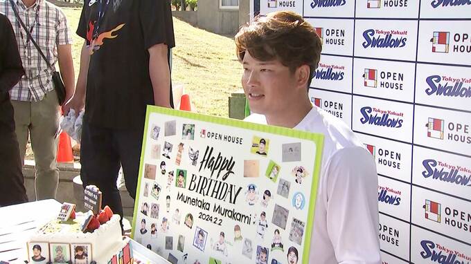 ヤクルト村上宗隆(むらかみ・むねたか)が2日、キャンプ地の沖縄・浦添市で24歳の誕生日を迎えた。