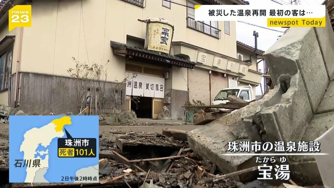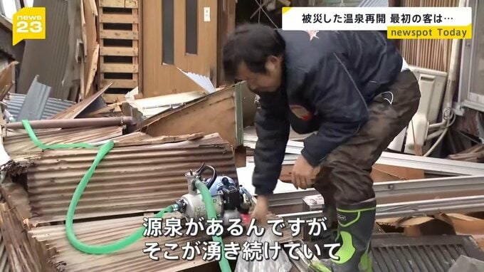 地震で倒壊した石川・珠洲市の温泉施設が、かろうじて湧き出る源泉からホースを使って“復活”。一番客は、入浴中に地震で亡くなった常連客の遺族でした。