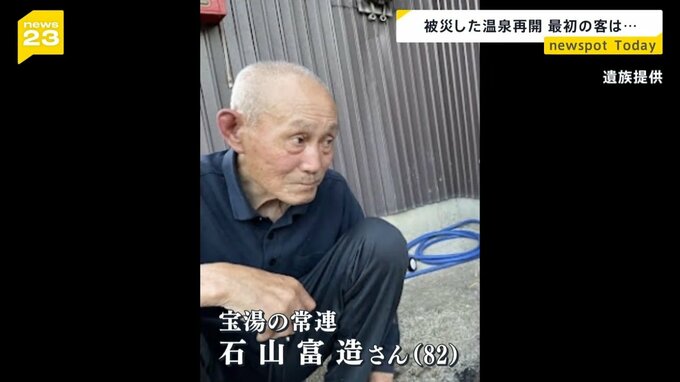 1か月前の地震で温泉施設が倒壊。当時、宝湯にいた常連客の石山富造(82)が地震に巻き込まれ亡くなりました。