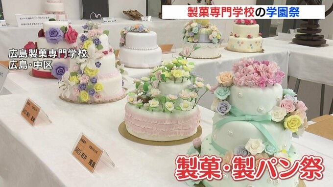 パティシエやパン職人を目指す学生がつくった、スイーツのアート作品の展示などがある学園祭が、広島市の専門学校で開かれています。スイーツやパンがずらりと並んだ学園祭、「製菓・製パン祭」が開かれているのは…