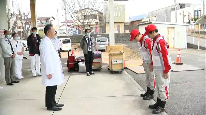 能登半島地震の被災地で救護活動などを行うため、石川県に向かう静岡県の裾野赤十字病院の医師などが2月2日、出発式を行いました。
