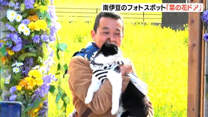 ドアの周りは造花で飾り、足元には菜の花を植えたプランターを並べていて、2024年は、南伊豆町の花でもあるマーガレットを加えたということです。